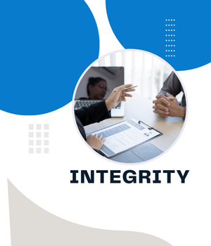 We , Maintain the greatest levels of integrity, honesty, and openness in all of our deadlings, generating trust and developing long term relationships with our clients and partners